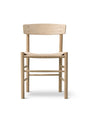 Et af Børge Mogensens mest velkendte møbler nogensinde, J39 Folkestolen. Den elskede stol er gået direkte i hjerterne på både os herhjemme, men også i udlandet. Børge Mogensens Folkestol er simpel, alsidig og særdeles holdbar. Stolen er skabt til at kunne holde igennem flere generationer, og den er brugt i såvel private hjem, som i restaurationsbranchen af netop denne grund. Stolens simple udtryk gør, at den passer ind i langt de fleste indretninger. Stolen her er med naturflet og stel i sæbebehandlet egetræ. Design: Børge Mogensen, 1947 Mål: H 77 x B 48 x D 43 cm Sædehøjde: 46 cm Vægt: 4,5 kg Materialer: Egetræ, papirflet