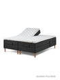 Sort elevationsseng med trådløs fjernbetjening fra vores eget brand Jacobsen Plus Beds. En komplet dobbeltseng inkl. ben, en praktisk topmadras samt pose til fjernbetjeningen. En luksuriøs og fleksibel seng med individuel støtte og komfort til lænd og skuldre.
