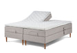 Sandfarvet elevationsseng med trådløs fjernbetjening fra vores eget brand Jacobsen Plus Beds. En komplet dobbeltseng inkl. ben, en praktisk topmadras samt pose til fjernbetjeningen. En luksuriøs og fleksibel seng med individuel støtte og komfort til lænd og skuldre.