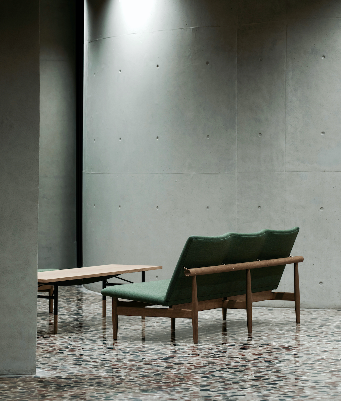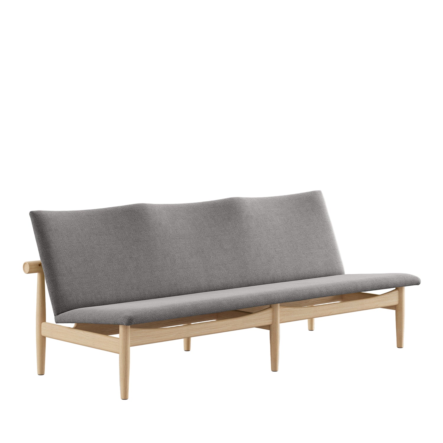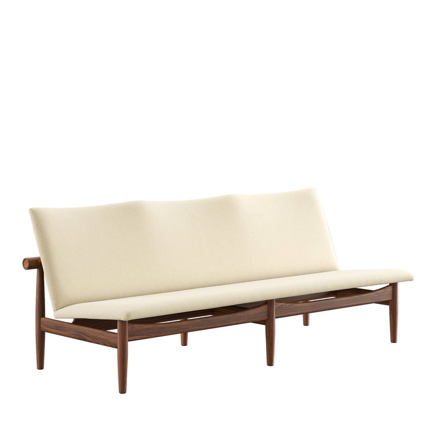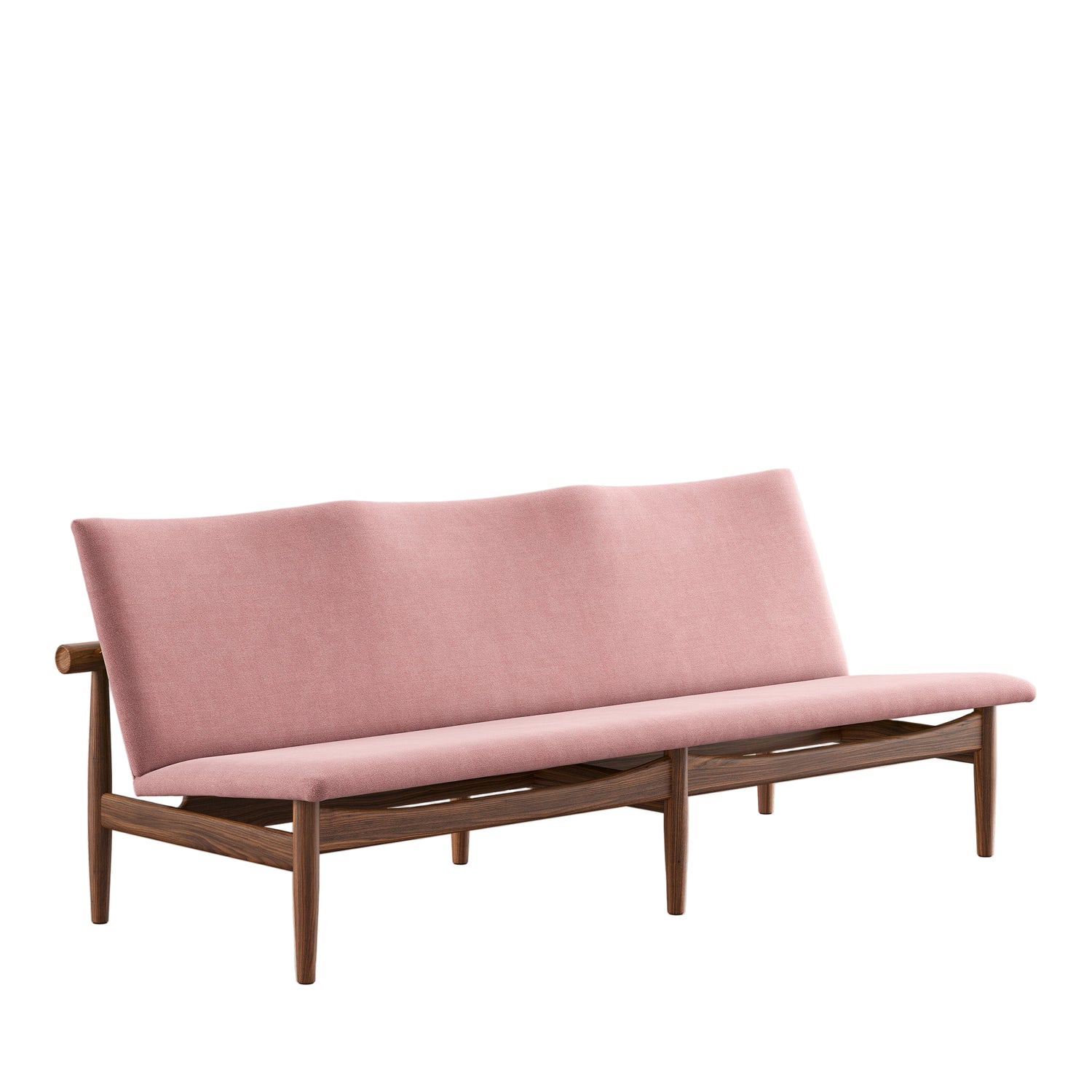 Her forenes japansk inspiration med dansk håndværk i en sofa der virker let og præcis på samme tid. Finn Juhls 3 personers Japan sofa hviler på et elegant stel i eg olie hvor den markante vandrette ryg stolt svæver frit fra rammen via diskrete messingafstandsstykker. Udtrykket er roligt og grafisk med bløde puder der giver behagelig støtte uden at dominere rummet. Sofaen er skabt til moderne hjem der ønsker klassisk kvalitet og et tidløst fokus på detaljer. Vælg polstring efter ønske for at sætte dit eget præg, mens den smukke åretegning i eg træder varmt frem og understreger seriens ikoniske linjer.