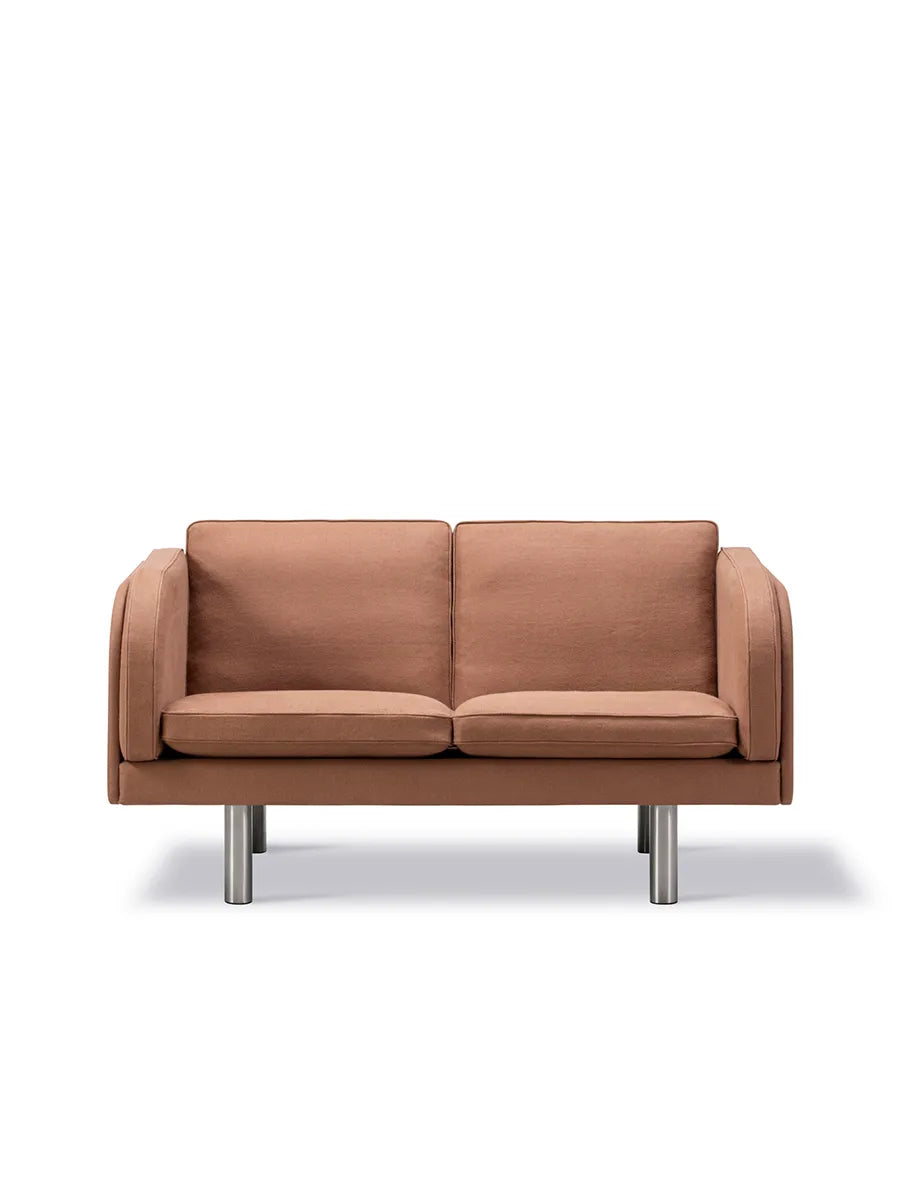 JG 2 personers sofa fra Fredericia Furniture. Sofaen er designet af Jørgen Gammelgaard i 1979. Sofaen har en smuk signaturdetalje i form af afrundede armlæn i begge ender. Sofaen er fuldpolstret med keder sygninger på hynderne. Hynderne er med skumkerne og dunvår med aftageligt betræk. Ben fås i massiv træ eller stål. Egetræsben kan fås med læderbånd.