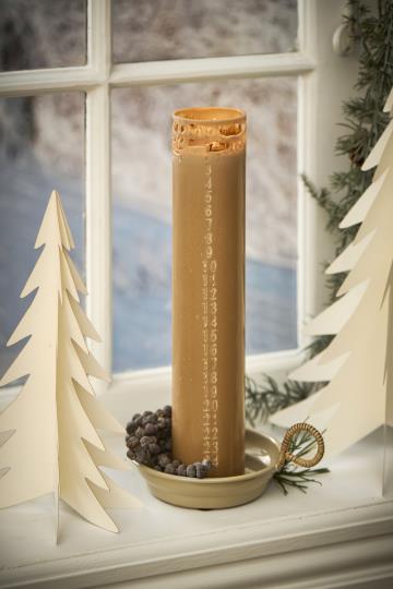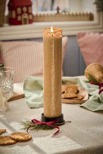 Skab ægte julestemning dag for dag med de smukke kalenderlys fra Ib Laursen. Lysene er fremstillet af svanemærket stearin og prydet med præget tal fra 1 til 24, så du kan tælle ned til juleaften på hyggeligste vis. Designet forener enkel nordisk æstetik med klassisk julenostalgi – perfekt til et dekorativt fad eller som midtpunkt på julebordet.
