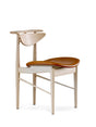 Sædet er polstret med cognacfarvet Nevada læder, som er en fuldnarvet anilinlæder. Læderet vil derfor patinere med tid, og hudfolder og insektbid kan være synlige. Da stolen er lavet i naturmaterialer, vil der kunne forekomme farveforskelle, da hvert enkelte stykke er unikt.
