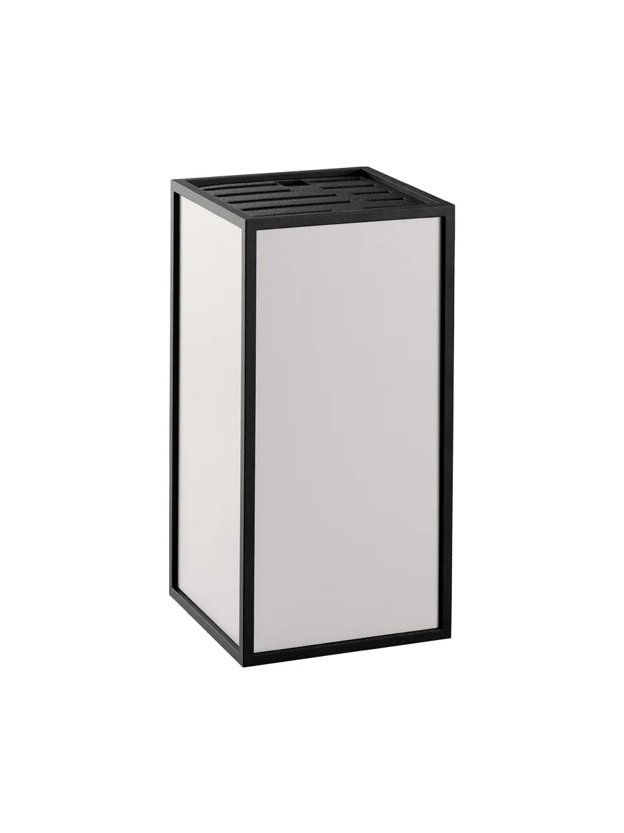 Audo Copenhagen K´Block er en minimalistisk knivblok, der er designet med inspiration fra Kubusstagens slanke udtryk. Et praktisk redskab til køkkenet, hvor du hurtigt kan få adgang til dine knive. Man kan også tage indsatsen ud og bruge holderen til opbevaring af grydeskeer og andre redskaber man bruger ved komfuret. Mål: Højde: 24 cm Længde: 12 cm Bredde: 12 cm Vægt: 1,9 kg.