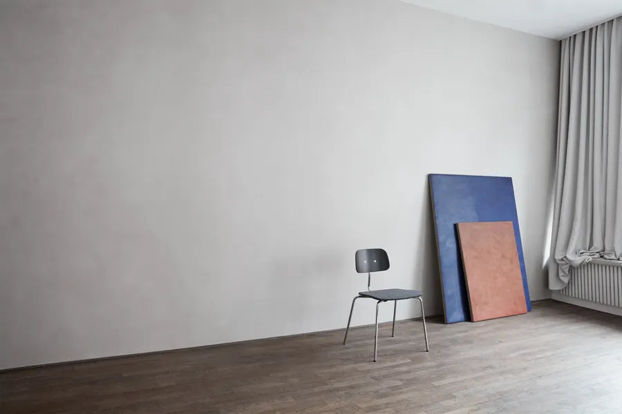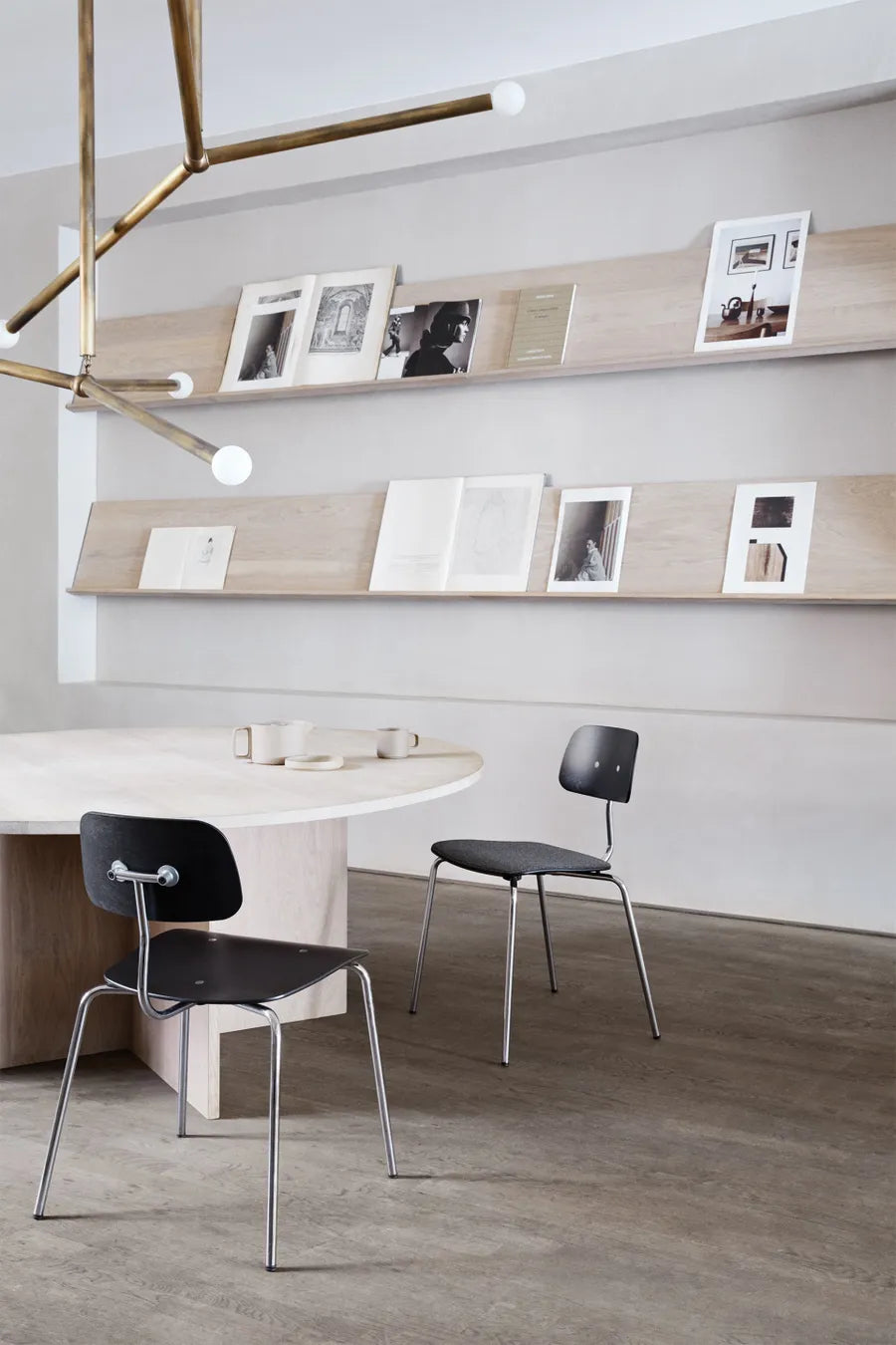 Den stabelbare spisestol er designet af Jørgen Rasmussen og fås med sæde og ryg i eg eller lakeret.