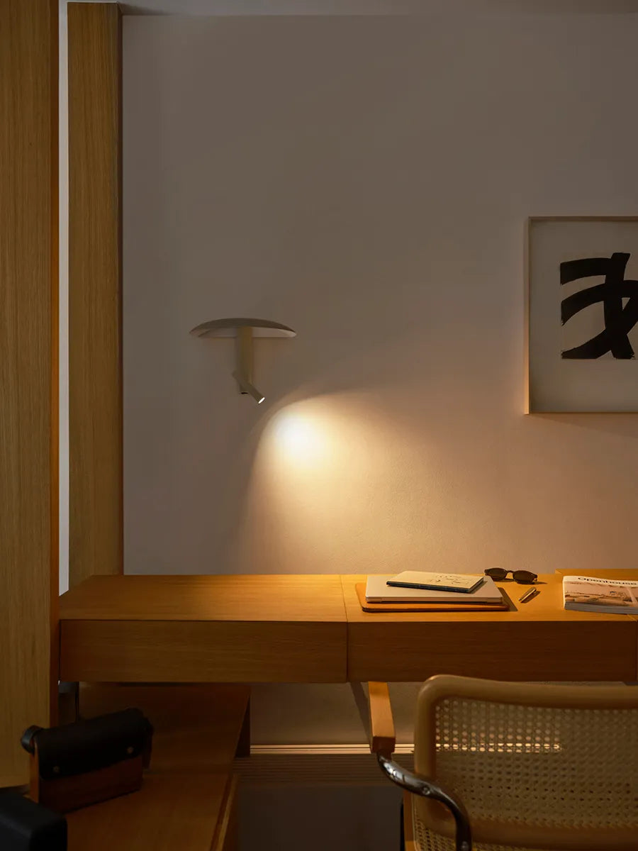 Konoha væglampe fra Marset er smuk og anvendelig. Den simple lampe er udstyret med et spot, der kan drejes 360 grader. Den drejelige spot er overdækket af lampens hoved, der sørger for at lyset bøjes til siden og nedad i et blødt lys. Konoha lampen er oplagt at bruge i soveværelset som natlampe, da den er eminent som læselys. Konoha Wall Lamp kommer i fire forskellige farver.