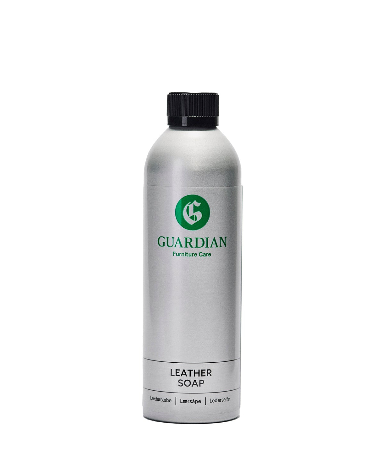Guardian Lædersæbe er en effektiv lædersæbe, som renser læderet, samtidigt med at det tilfører læderet næring. Lædersæben er klar til brug og nem at bruge på Deres lædermøbler. Ryst flasken og hæld lædersæben på en ren blød svamp. Brug altid sæben på hele flader eller hele møblet, for at undgå rande. Lad lædersæben virke i ca. 10 minutter. Tør efter med en let opvredet blød klud med rent vand. Læderet tørrer ved almindelig stuetemperatur. Nogle lædertyper kan blive lidt dybere eller mørkere i farven efter behandlingen. Test altid produktet på læderet inden brug. Guardian Lædersæbe anvendes 3-4 gange om året.