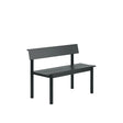 Lineær, komfortabel og klar til udeliv året rundt. Linear Steel havebænk med ryglæn fra Muuto er designet af Thomas Bentzen og giver terrassen eller altanen et roligt, tidløst udtryk med gennemført funktionalitet. Den slanke silhuet og det plane sæde gør bænken let at kombinere med alt fra caféborde til langborde, mens ryglænet giver den ekstra støtte, der gør lange middage og formiddagskaffe endnu mere behagelige. Konstruktionen er udført i galvaniseret stål med en slidstærk, UV bestandig pulverlakering i dyb mat struktur, som tåler nordisk vejr, dag efter dag. Det er outdoor design med høj brugsværdi, hvor hver detalje er gennemtænkt fra de diskrete plastglidere til muligheden for reservedele, så møblet kan leve i mange sæsoner. Linear Steel bænkens kompakte format på 110 cm passer flot ved husmuren, på den lille altan eller som ekstra siddeplads ved havesættet. Sædehøjden er komfortabel og passer fint til standard udendørsbordhøjder, og den samlede højde giver et naturligt, oprejst siddestøtte uden at virke dominerende i rummet. Serien tilbydes i en palet af Muutos signaturfarver, så du kan skabe alt fra dæmpede, moderne udtryk til varme, mere livlige kombinationer i haven eller på caféterrassen.