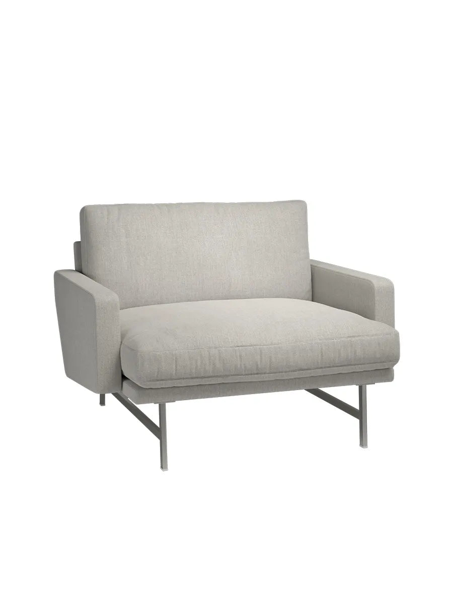 Lissoni-serien udvides nu med to forskellige størrelser af loungestole. Brug loungestolen sammen med sofaen, eller sæt den alene og lav et ekstra miljø i stuen. Lissoni serien er designet af Piero Lissoni. Stolen her er i lækkert Moss tekstil i farven "015 Clay". Stellet er i mat poleret rustfrit stål. Pudefyldet består af kuglefibre og fjer.
