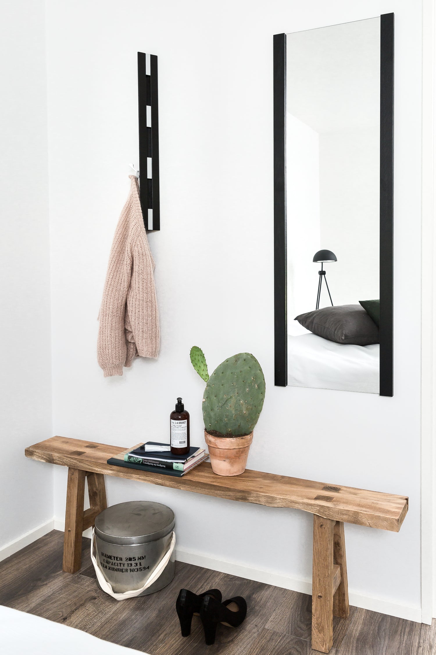 Smart og praktisk lodret KNAX knagerække fra LoCa med 4 knager. Vælg mellem flere forskellige trætyper, her med grå eller sorte knager.