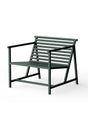 Grøn lounge stol fra 19 Outdoors. Stolen er lavet af aluminium og er pulverlakeret grøn. Den æstetisk flotte og enkle stol er perfekt til haven eller terrassen og kommer med plastik bendupper