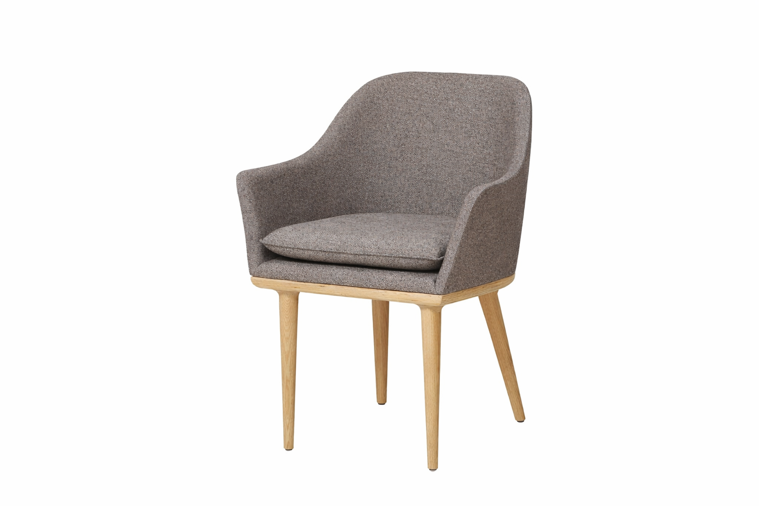 Komforten er mærkbar fra første minut. Den polstrede skal omfavner kroppen med blid støtte, og sædet er opbygget i formstøbt HR-skum, der bevarer sin elasticitet over tid. Proportionerne er fint afstemt, så man sidder naturligt oprejst og afslappet, og den stabile trærams konstruktion giver en tryg base i hverdagen – fra familiemiddag til gæstemiddag. Samtidig er udtrykket raffineret og roligt: de bløde kurver møder præcise linjer i stellet, og detaljeniveauet i forarbejdningen forankrer hele kollektionen i skandinavisk snedkertradition. Det gør Lunar til en sikker investering både æstetisk og funktionelt.