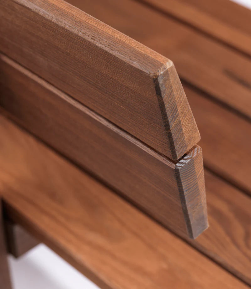 Træ og egenskaber: Varmebehandling reducerer fugtabsorption, så møblet kan stå ude året rundt.