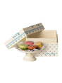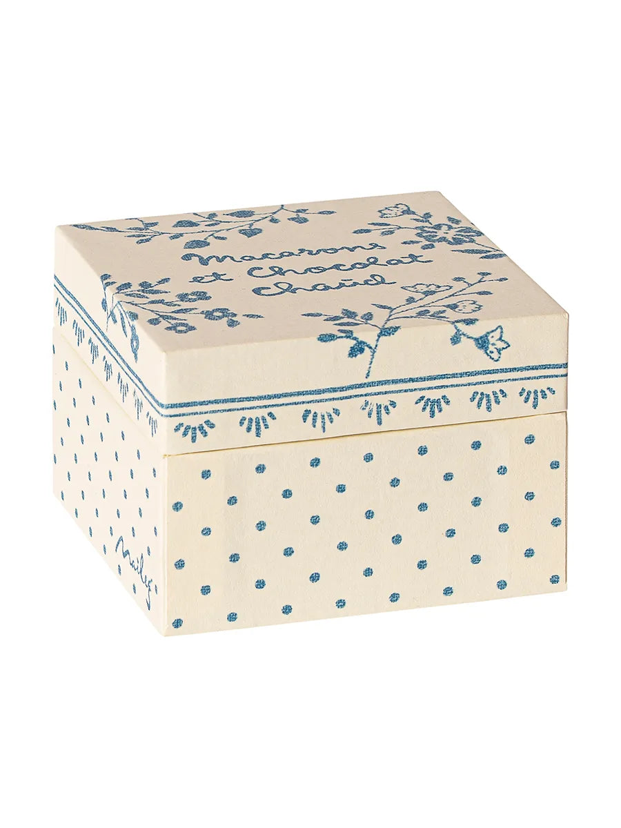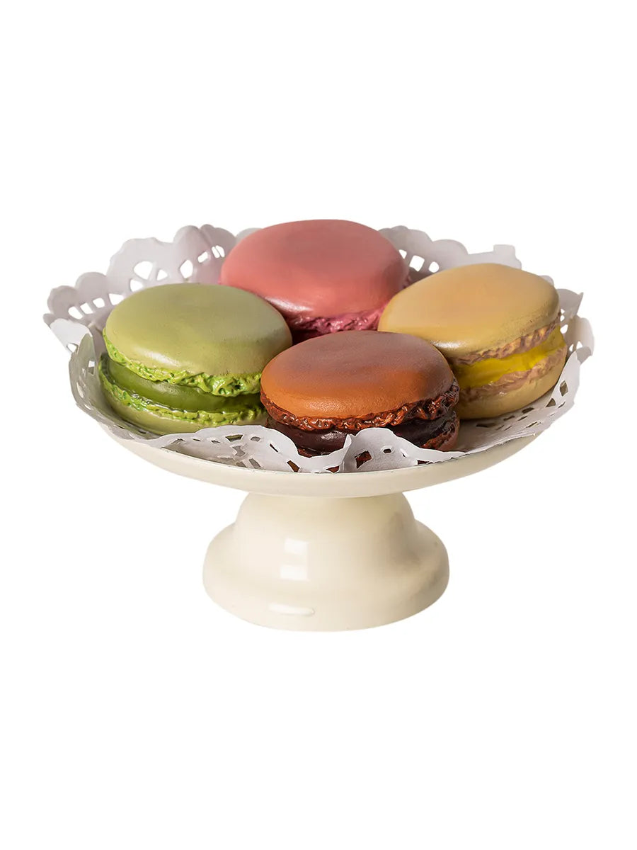 Smukke og lækre macarons serveret på et kagefad med kageservietter. Tag fadet med når dine små Maileg venner skal på picnic eller teselskab. Kagefadet kommer i fin konditoræske.