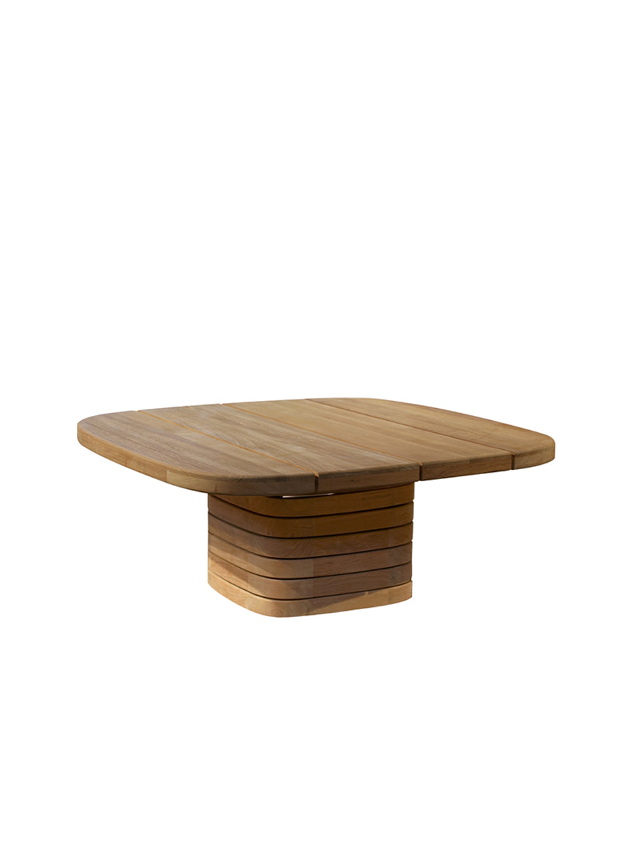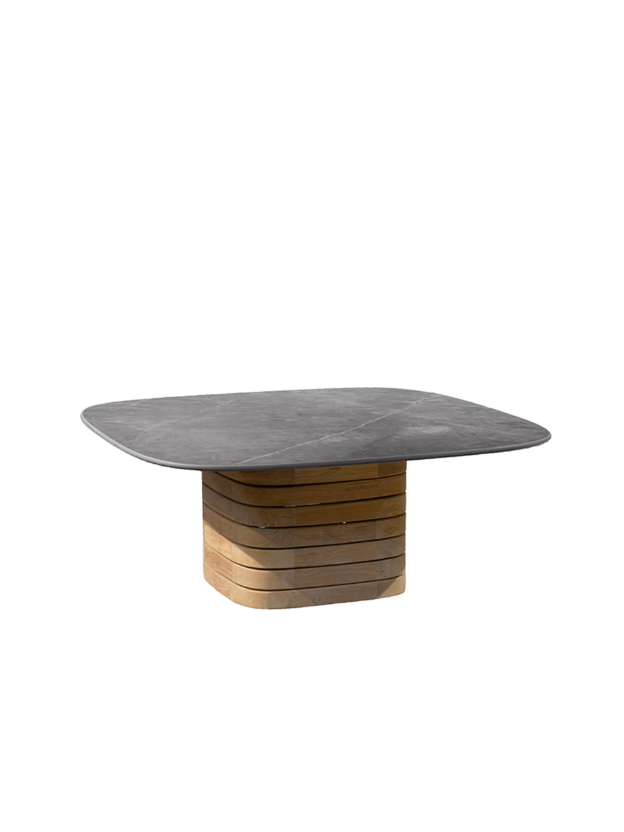 Mellow udendørs sofabord, kvadratisk, small fra Cane-line Design er en skulpturel og funktionel tilføjelse til mindre loungeområder. Den kompakte bordplade på 90 x 90 cm med blødt afrundede hjørner giver et roligt udtryk og god plads til hverdagens fornødenheder, mens den solide søjlebase sikrer stabilitet og en harmonisk silhuet. Bordets størrelse og lave højde gør det nemt at placere foran sofaen eller ved siden af loungestole, og det lette formsprog passer naturligt ind på altanen, i gårdhaven eller som sidebord ved poolen. Vælg mellem bordplade i teak for et naturligt, taktilt udtryk eller keramik i Taupe eller Travertine look for en mere raffineret udtryk. Resultatet er et tidssvarende sofabord, der forener varig kvalitet med et enkelt, moderne design.