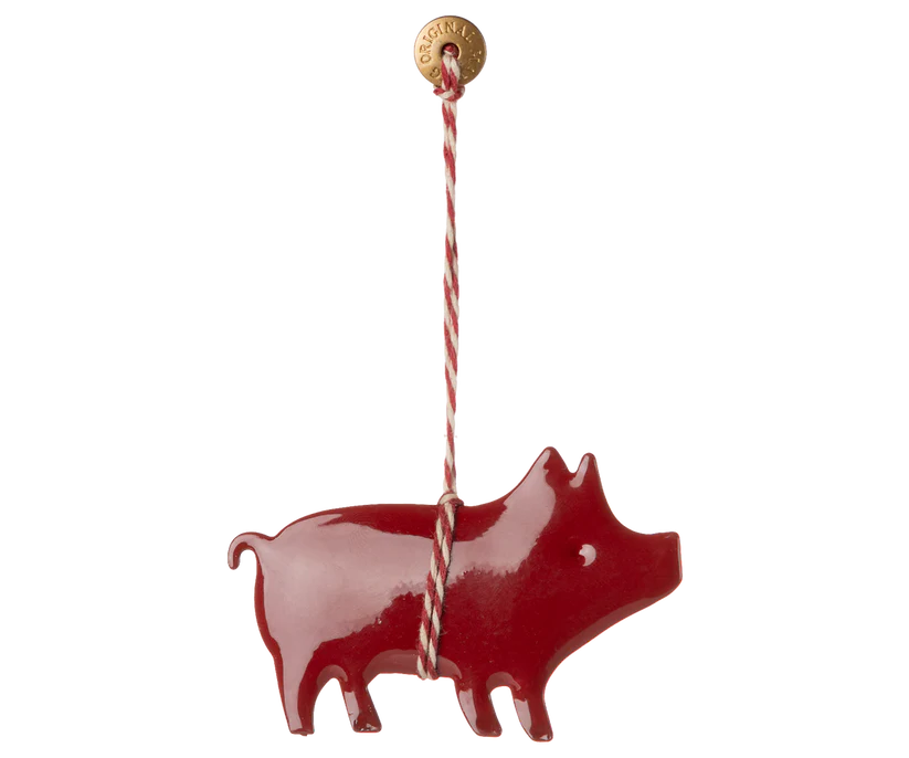 Oplev et charmerende element til julepynt eller interiør med Metal Ophæng Gris Rød fra Maileg – en rød lille gris i metal der bringer skandinavisk hygge og symbolik ind i dit hjem. Med sin dybde i farven, det fine håndmalede finish og den elegante ophængssnor bliver denne ornament både et smilende blikfang på juletræet og et elegant dekorativt indslag året rundt. Grisens klassiske form og glansfulde finish gør den til en perfekt gave eller tilføjelse til en samling af Mailegs ornamenter.
