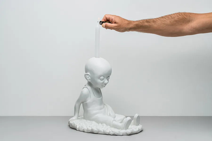 I samarbejde med Michael Kvium har raawii skabt lysestagen, "Cloud Dancer". Lysestagen må siges at være meget kendetegnende for Michael Kviums populære kunststil. Brug Cloud Dancer lysestagen fra raawii med et lys i, og lad stearinen glide ned over ansigtet på lysestagen for et tvistet udtryk. Et vaskeægte mesterværk af en af Danmarks største nulevende kunstnere.