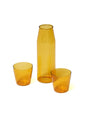 Et smukt sæt bestående af en karaffel og to glas fra Nine. Designet af Julien Renault for Nine. Det er en traditionel mælkeflaske, der er inspirationen bag designet. Sættet er nemt at have med og opbevare, da glassene kan stables på hovedet oven på karaflen. Her er sættet i gult glas.