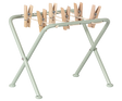 Her er et lille stykke hverdag til Maileg universet. Miniature tørrestativet med tøjklemmer giver mus og kaniner et charmerende sted at hænge vasketøjet, så legen føles levende og komplet. Den lakerede metalramme står stabilt, de små træklemmer er lige til at bruge, og størrelsen passer perfekt i House of Miniature. En fin gaveidé der inviterer til rolleleg og sætter fantasien i gang igen og igen.