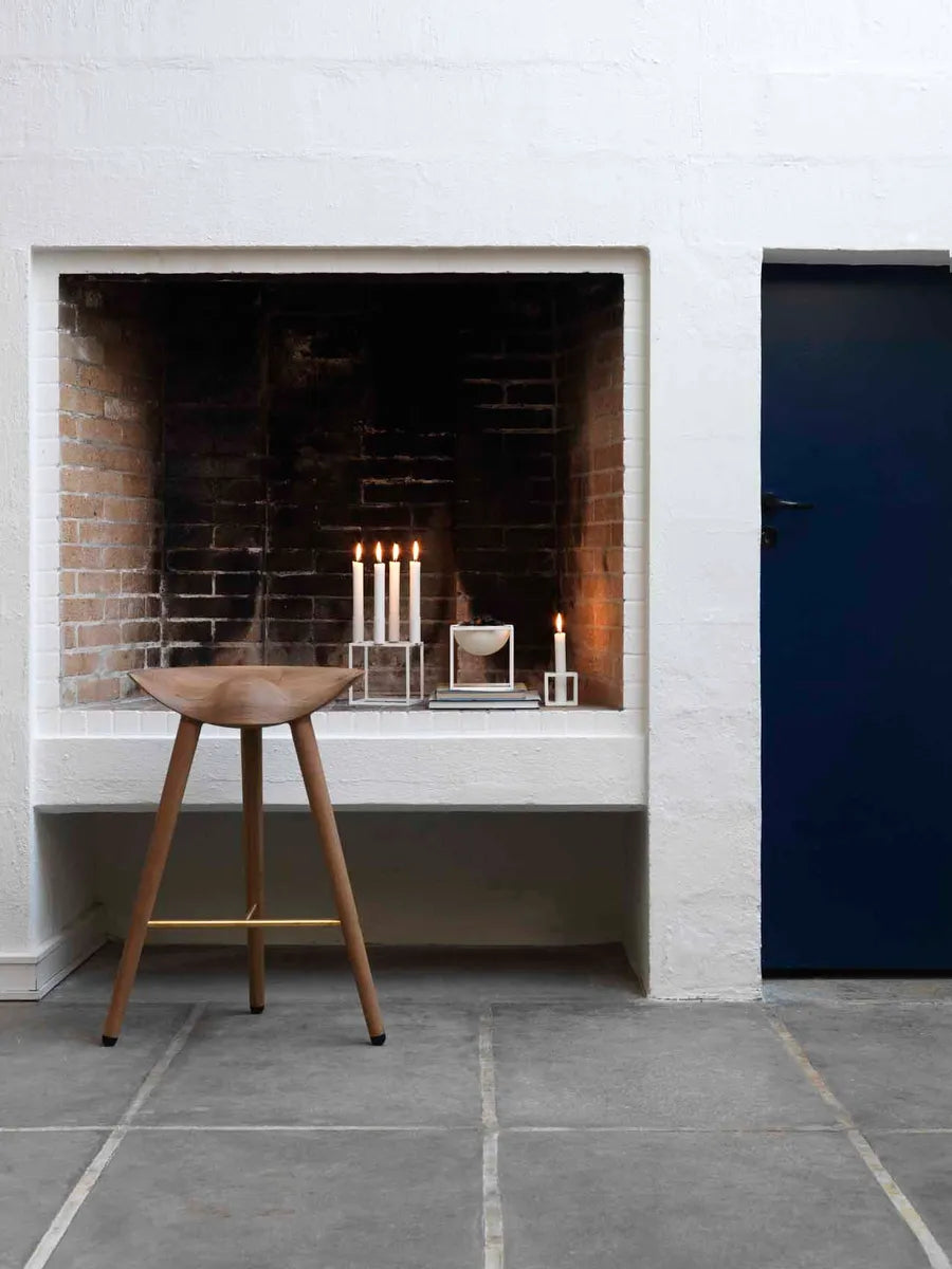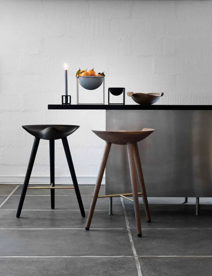 Ml42 barstolen fra Audo Copenhagen har en sædehøjde på 77 cm og kan her vælges i flere farver. Barstolen er designet af Mogens Lassen i 1942. Materialer: - Sortbejdset bøg - Egetræ - Brun olieret egetræ Barstolen findes også i en højde på 69 cm. Priser fra 3.995,-