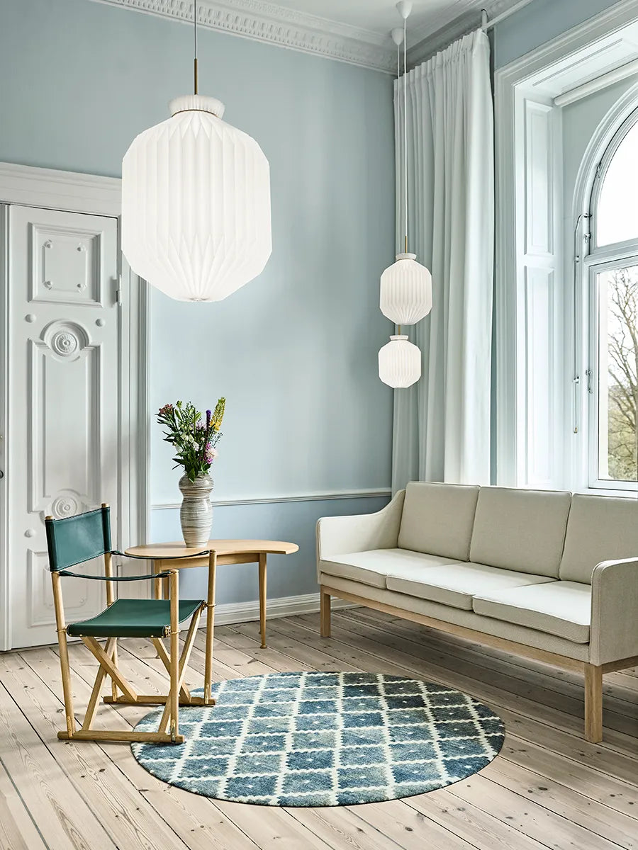 Model 105 er designet af Mogens Koch i 1942 til en håndværksudstilling i Stockholm. Model 105 pendlen har været medvirkende til at forme Le Klints DNA med foldede lamper. Model 105 lampen fra Le Klint har et udtryk, der minder om japanske papirlygter. Pendlen af Mogens Koch kommer i fire forskellige størrelser og med et stålophæng i farven Golden. Lampeskærmen er håndfoldet i Le Klints lampeskærmsfolie, som er UV-resistent og som holder på den hvide farve i mange år.
