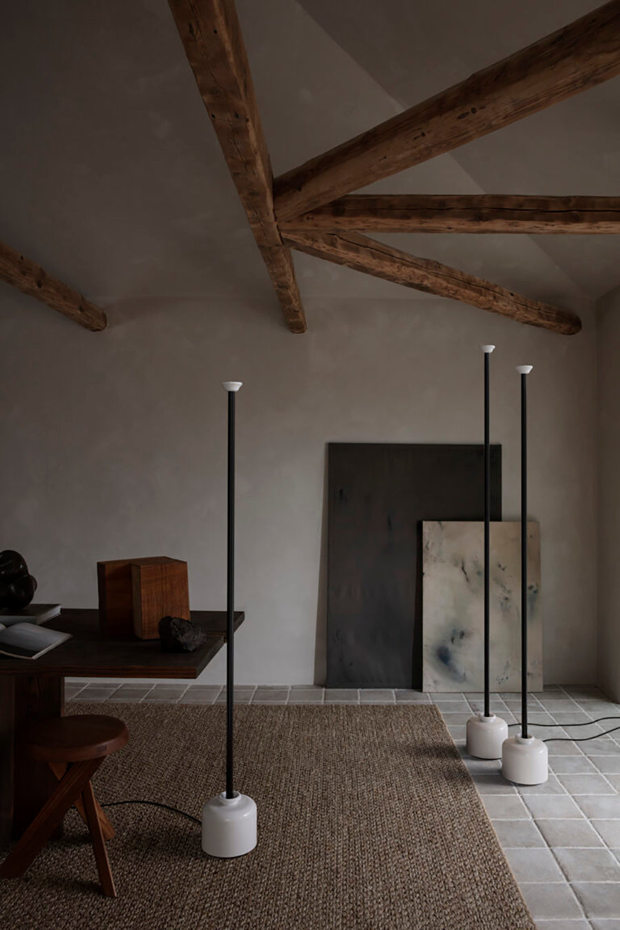 Model 1095 forener diskret elegance med innovativ belysning. Designet af Gino Sarfatti i 1968 og genudgivet af Astep, fremstår gulvlampen med en raffineret lethed i det slanke aluminiumsrør, mens den lille reflekterende skærm i hvidmalet aluminium spreder et indirekte og stemningsfuldt lys.