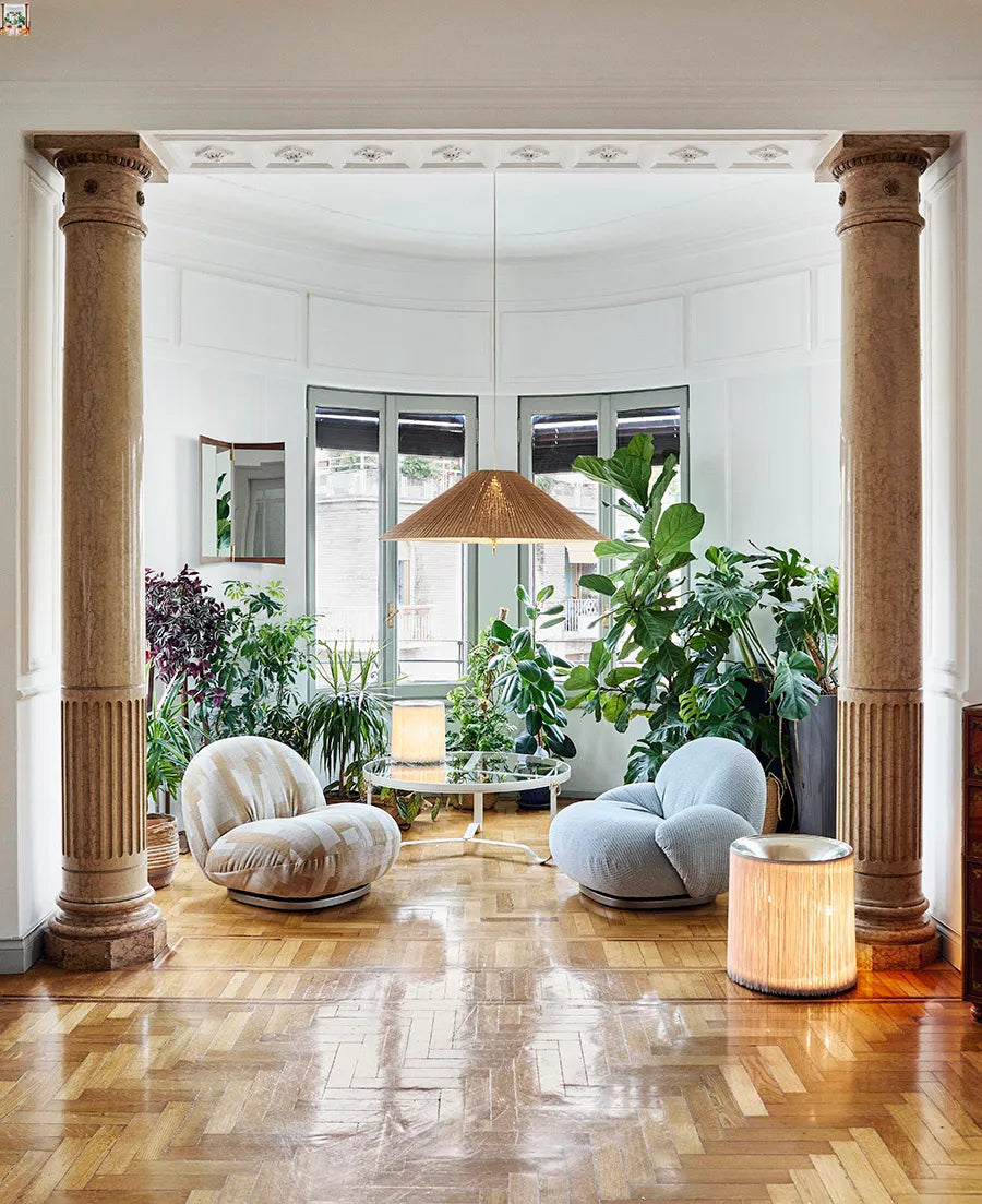597 Gulvlampen af Gianfranco Frattini er med sit særprægede udseende en sjov tilføjelse til eksempelvis et tomt hjørne i stuen. Lampen er udstyret med flere pærer indenunder de skønne frynser. 597 lampen er oprindeligt lanceret i 1961. Nu 60 år senere er lampen igen aktuel, og GUBI relancerer det skønne ikon. 597 lampen var i 60'erne særdeles nytænkende i sin form og sine materialer, og nu hyldes dette ved en relancering. 597 lampen fås også i en mindre model, der er ideel som bordlampe.