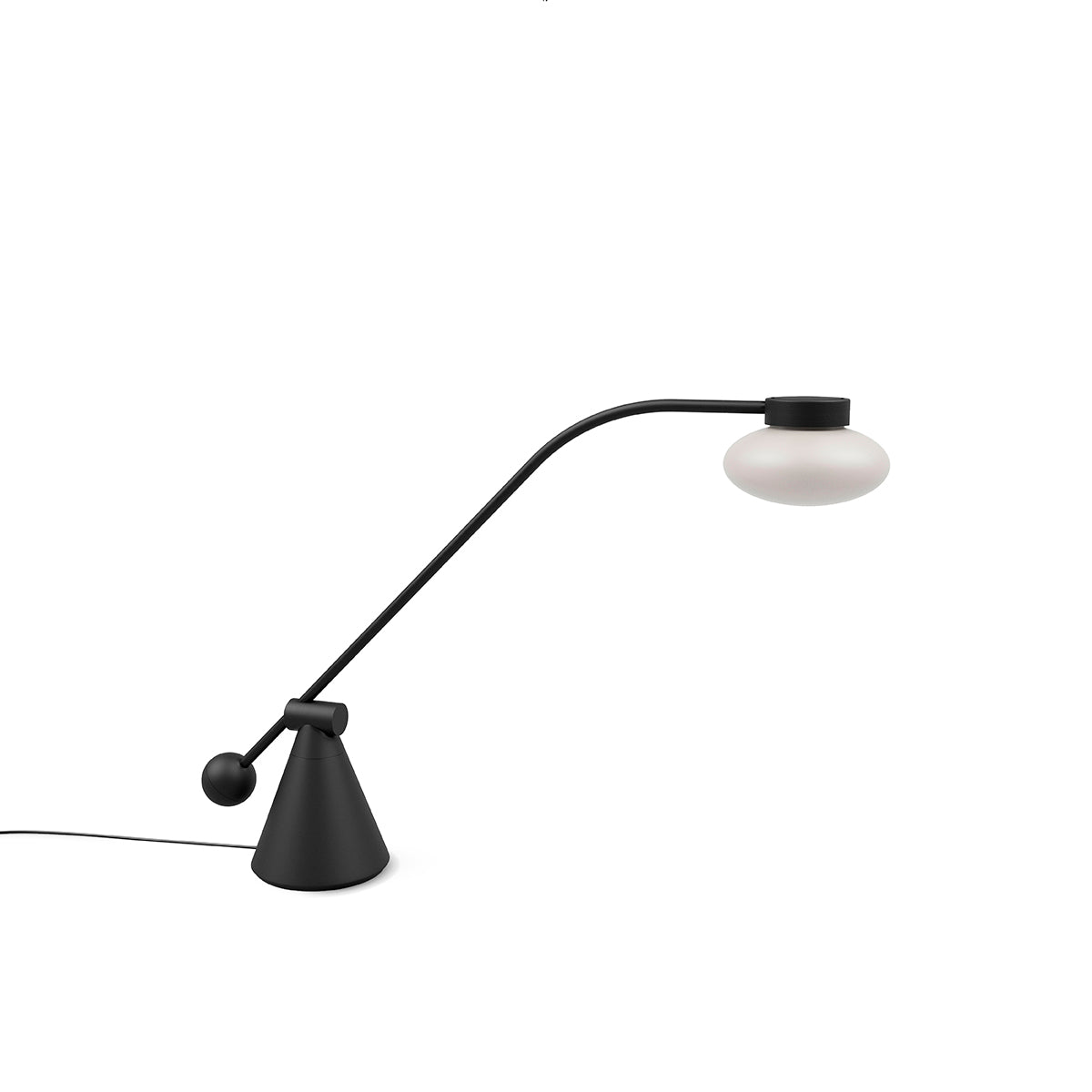 Mün bordlampen fra Stellar Works er en skulpturel ledsager til skrivebordet og vindueskarmen, hvor rolig poesi møder præcis funktion. OEO Studio har destilleret inspirationen fra analoge ritualer til en moderne lysoplevelse, der føles varm, taktil og nærværende. Den slanke, pulverlakerede stålkrop løfter den bløde skærm i glas, så lyset falder jævnt og behageligt uden at blænde. Silhuetten er bevidst enkel, men fuld af raffinerede overgange, der får lampen til at virke let i rummet og samtidig solid i hverdagen. Med den integrerede LED får du et energieffektivt lys med fin farvegengivelse og en naturlig, gylden tone, der skaber ro ved både arbejdsopgaver og aftenlæsning. Den indbyggede tretrins touchdæmpning lader dig skifte fra fokuseret arbejdslys til dæmpet stemning på et øjeblik, og den generøse rækkevidde fra armens længde gør lampen fleksibel ved større bordplader. Mün er lige oplagt i hjemmekontoret, i stuen eller i receptionen, hvor den tydelige form giver et roligt fokuspunkt. Kombinationen af sort stel og hvid skærm gør lampen nem at forene med både træ, sten og tekstil, og materialerne er valgt for at holde sig smukke i brug år efter år. Det er tidløs belysning, hvor hver detalje er tænkt igennem, så du får et stykke industriel poesi, der fungerer hver eneste dag.