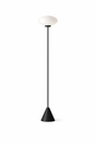 Mün gulvlampe 170 er skabt til at give rummet en rolig, behagelig atmosfære med et lys, der føles naturligt at leve i. Den runde skærm i hvidt opalglas spreder en jævn, blændfri glød, som gør sig lige godt i stuen ved sofaen, ved lænestolen eller i soveværelset. Den slanke sorte stander løfter glasset let og elegant, så lampen fremstår både grafisk og varm på samme tid. Mün er formgivet med stor sans for proportioner og hverdagsfunktion, så du får en belysningsoplevelse der forener poesi og præcision. Den høje model giver smuk skala i rummet og er lige så fin alene som i samspil med øvrige lamper i serien. Opalglasset tæmmer lyset og gør stemningen rolig, hvad enten du læser, arbejder koncentreret eller nyder et stille øjeblik. Den integrerede LED sikrer lavt energiforbrug, lang levetid og et behageligt lysniveau, som gør Mün til en trofast ledsager i mange år.