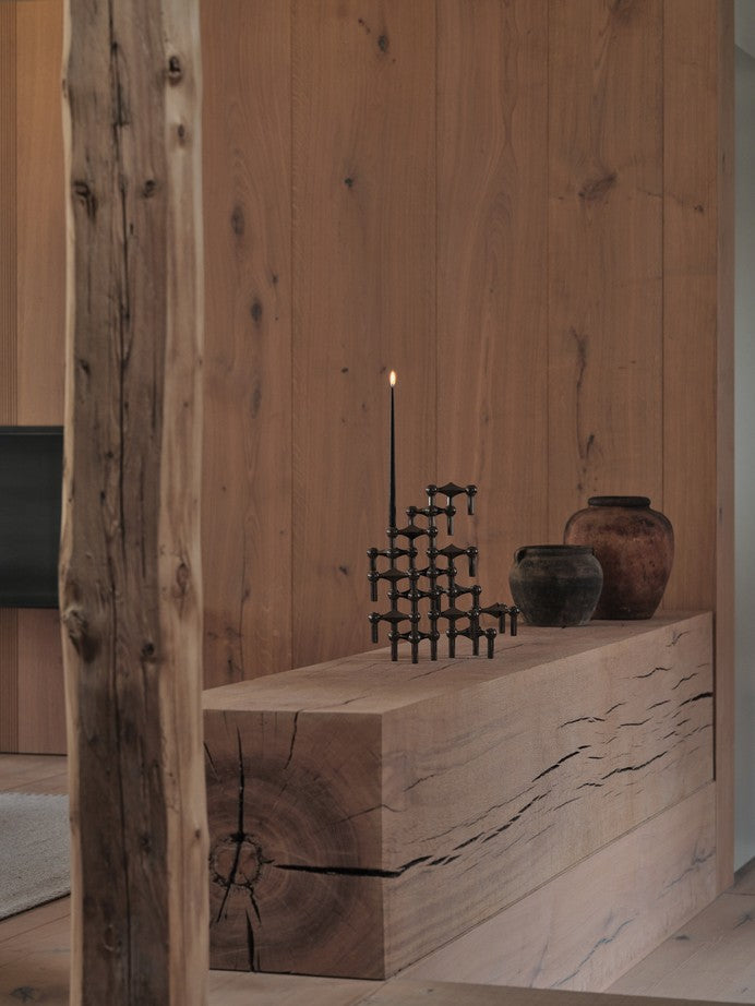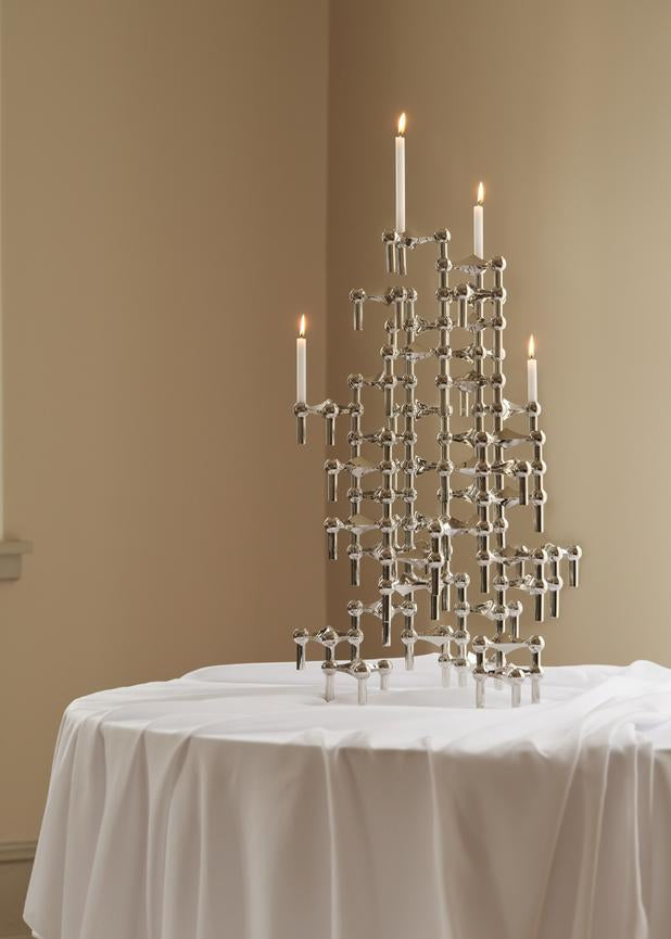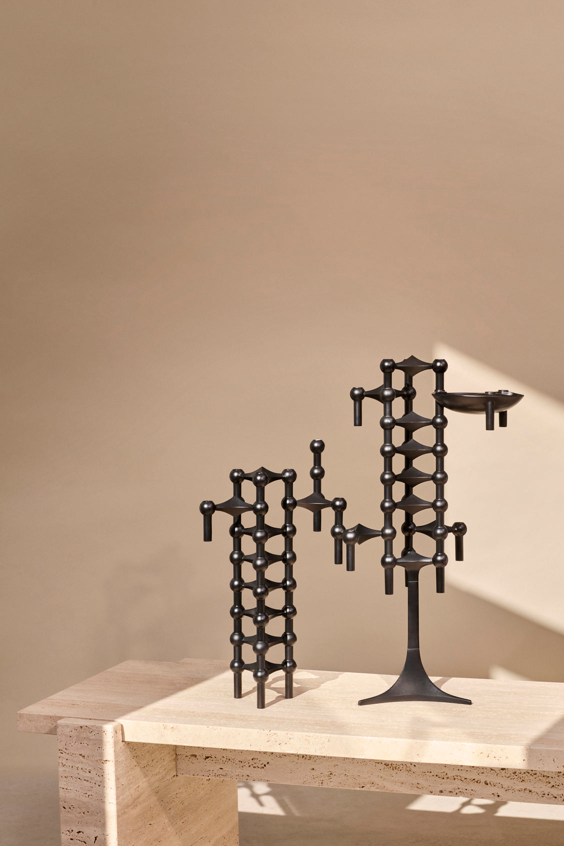 Lysestagen har plads til tre lys og kan stables til det uendelige, således du kan få din helt egen og personlige lysestage/skulptur derhjemme. De er oplagte at give i gave til en, du holder af.