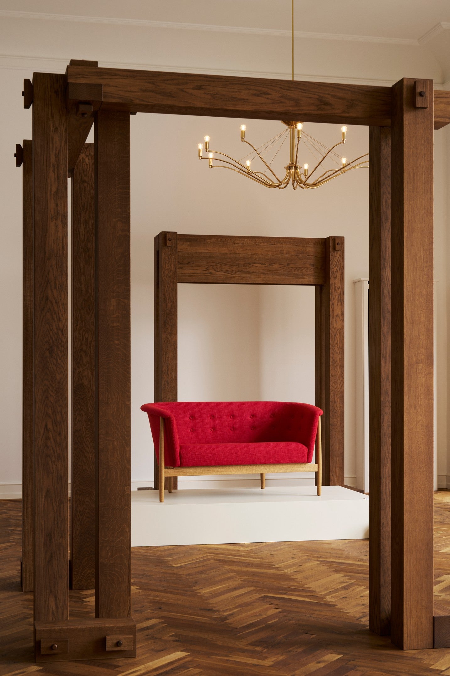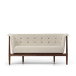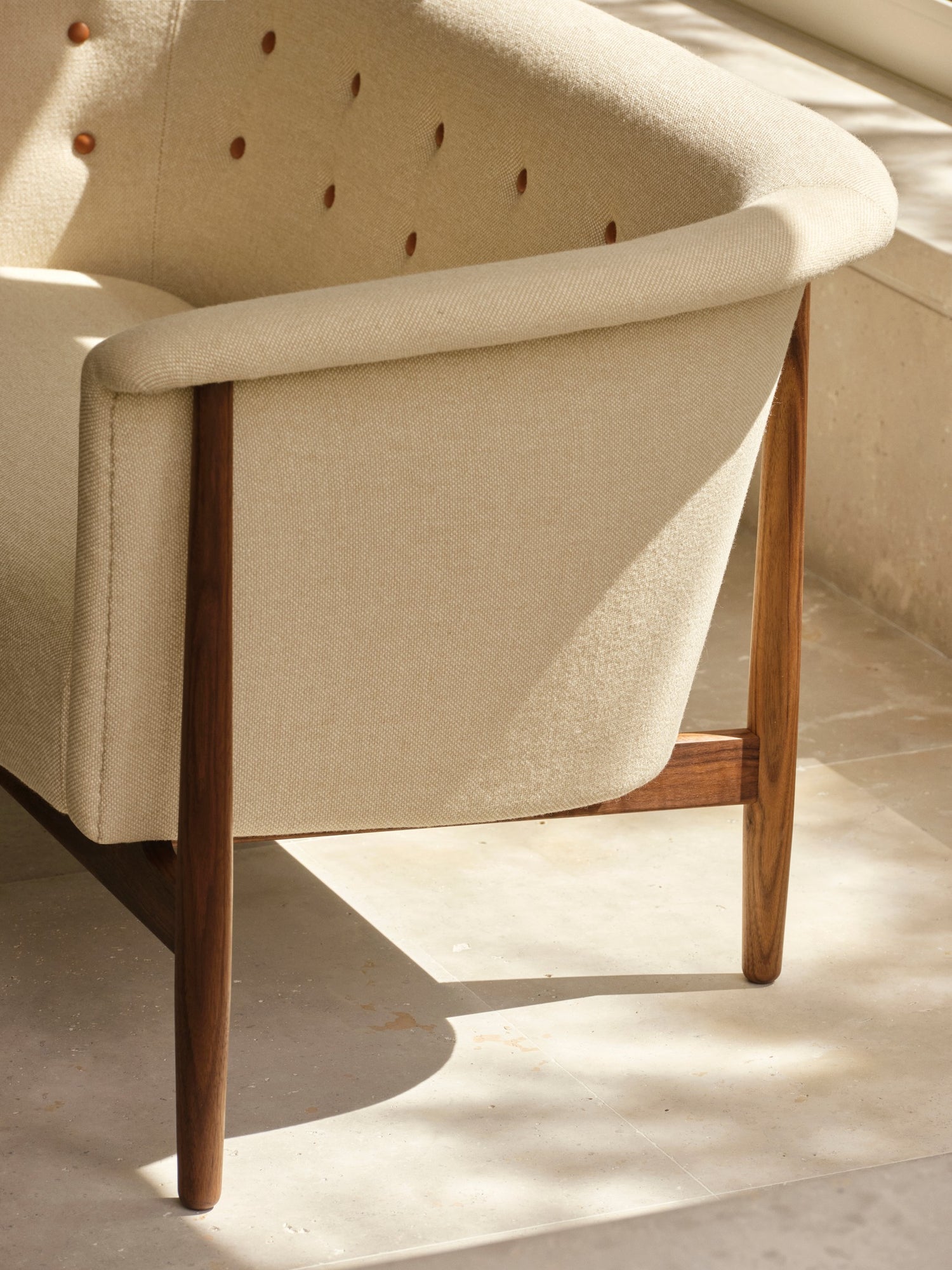 Materiale: Massiv eg (FSC®-certificeret) eller valnød; stram polstring i stof/læder; håndlavede knapper.