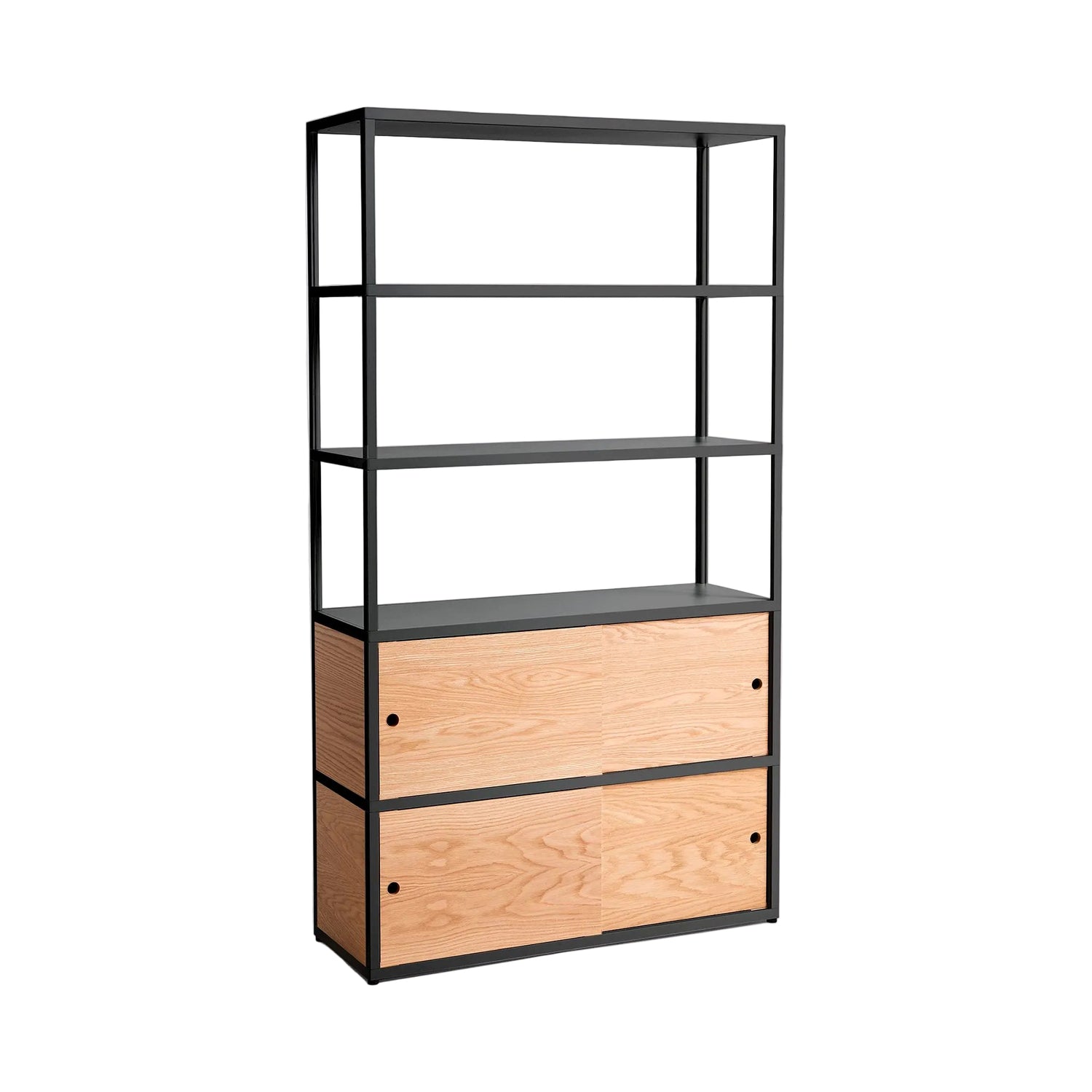 Her får du HAYs New Order reol i kombination 503, når du ønsker generøs opbevaring i et let og arkitektonisk udtryk. Systemet er udviklet af den anerkendte tyske designer Stefan Diez og bygger på en åben grid i pulverlakeret aluminium, som giver strukturel klarhed, høj stabilitet og et minimalistisk look, der passer naturligt ind i både private og professionelle miljøer. New Order er skabt til at kunne vokse med dine behov: du kan bygge åbne, luftige opstillinger eller mere lukkede kompositioner med paneler og skydedøre, og det hele kan klikkes af og på uden brug af værktøj. Resultatet er en langtidsholdbar løsning, der er nem at opdatere og vedligeholde i takt med at livet ændrer sig.