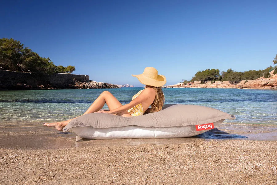 Den flydende Fatboy sækkestol, Original Floatzac er fyldt med hurtigtørrende vandfaste perler, og den har et stærkt net på undersiden, så vandet kan løbe ud.