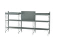 Outdoor M er en større kombination med tre sektioner, som giver masser af plads og en naturlig struktur i indretningen. De galvaniserede metalhylder med både høj og lav kant gør det nemt at skabe orden. Hylder med høj kant er ideelle til krukker, flasker og redskaber, mens de lave kanter giver et åbent og let look til servering, lanterner og pynt. Rygpanelet fungerer som en elegant afgrænsning og giver reolen karakter, samtidig med at du får et praktisk sted at samle de ting, du gerne vil have lige ved hånden i udesæsonen.