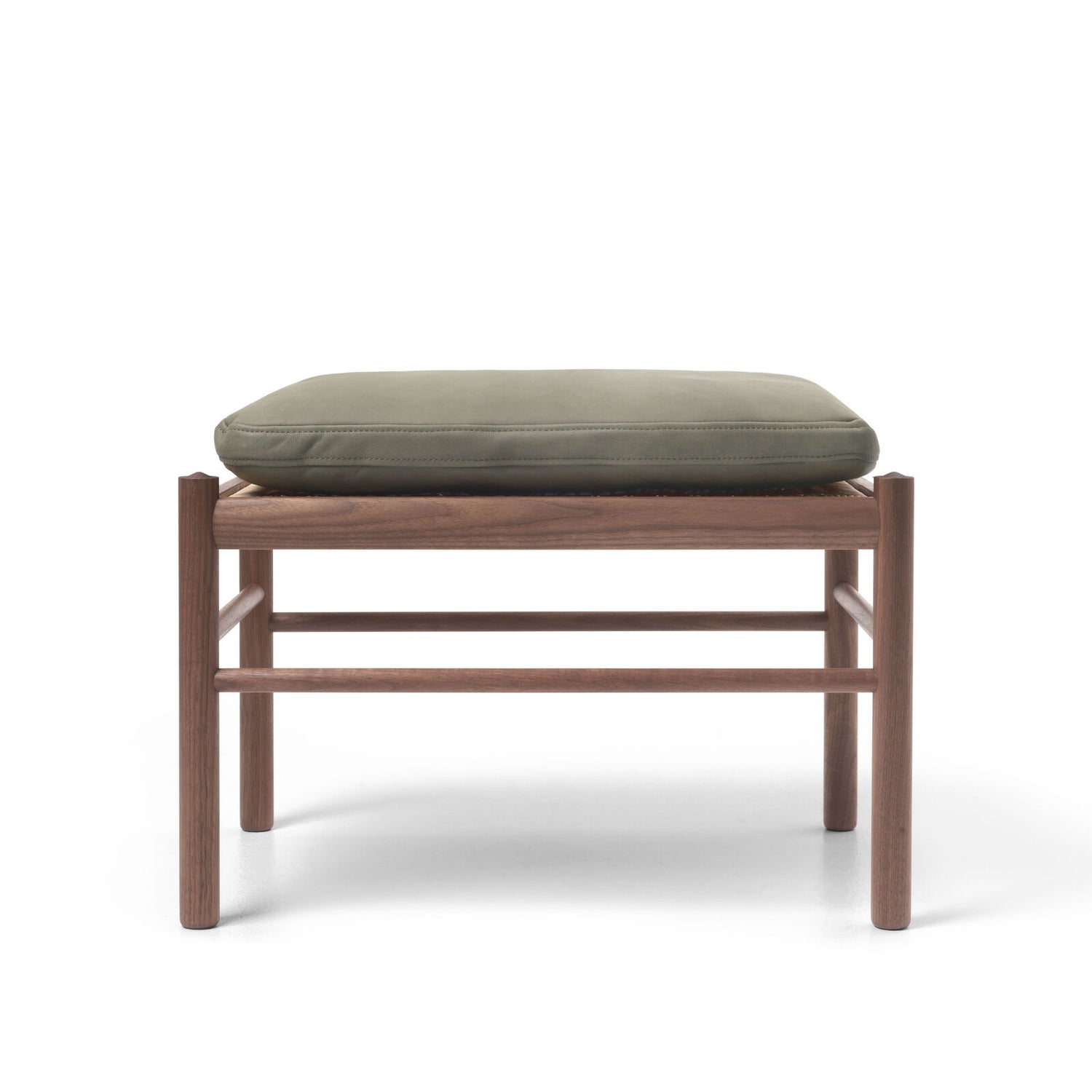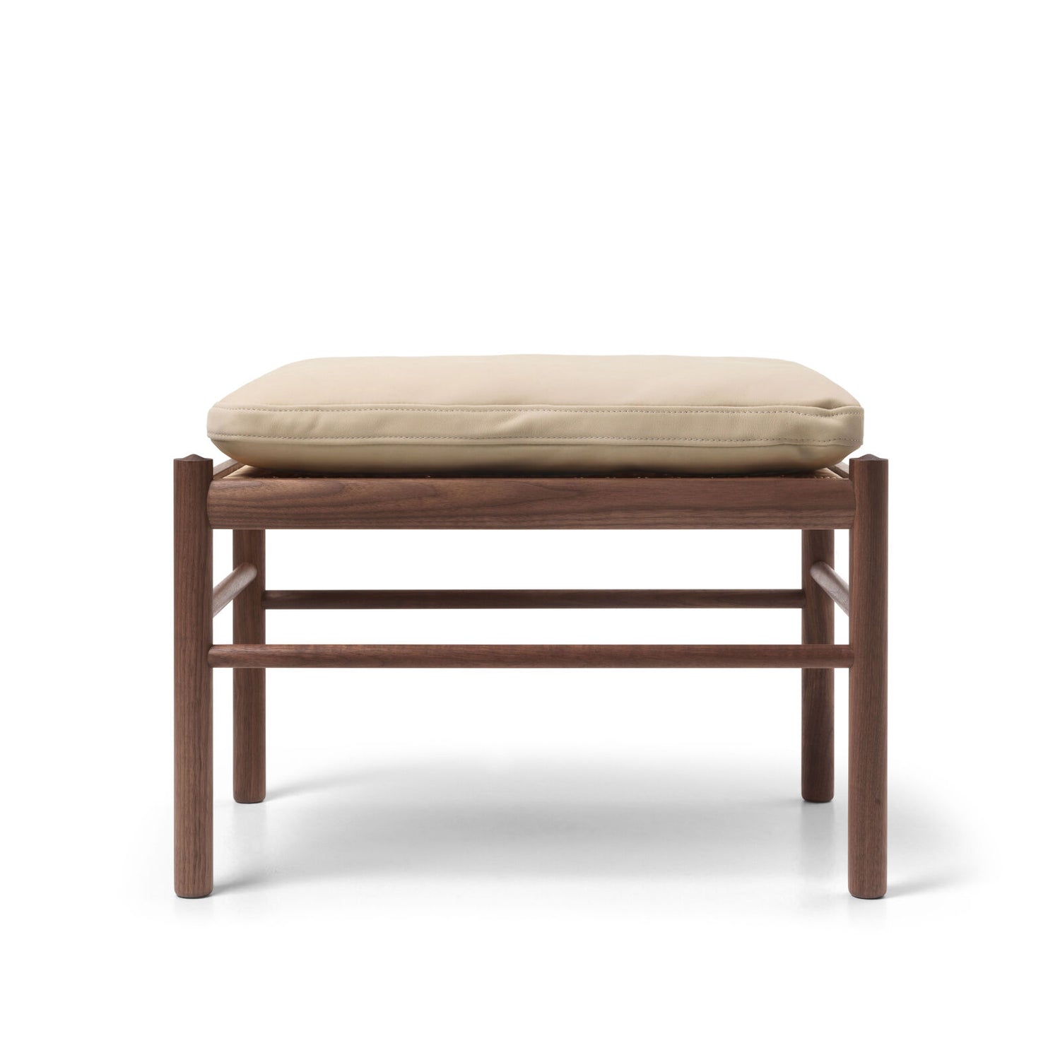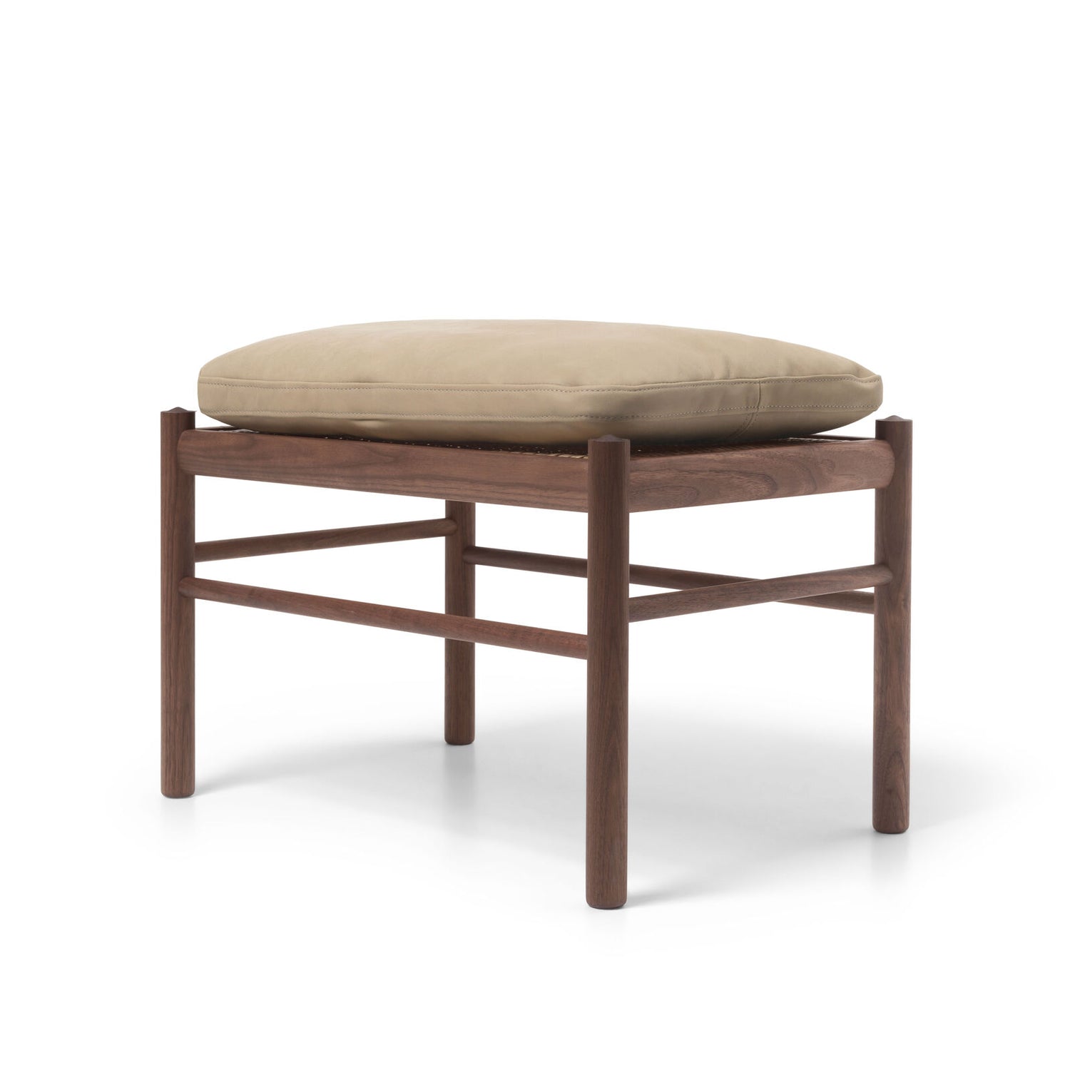 OW149F er den elegante fodskammel til Ole Wanschers ikoniske Colonial-lænestol. Den slanke konstruktion i massivt, olieret valnød lader håndværket tale, mens den bløde TERRA®-læderhynde indbyder til ro og afslapning. Under hynden ligger et klassisk, håndflettet rørflet-sæde, som giver lethed og lang holdbarhed. I olieret valnød får træet dyb glød, og TERRA®-læderets silkematte anilinfinish tilfører en nutidig varme – smuk alene i stuen eller som naturlig forlængelse af din Colonial.