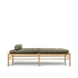 OW150 daybed destillerer Ole Wanschers raffinerede lethed til et roligt hvilested med lang levetid. Den enkle madras synes at svæve over den slanke ramme i olieret eg, mens den stærke bund i håndvævede bomuldsgjorde giver efter for kroppen og holder formen smukt over tid. I TERRA®-læder får du en blød, silkemat anilinfinish, der patinerer elegant og fås i nøje kuraterede jordfarver – perfekt alene i stuen, i hall’en eller som del af en harmonisk OW-opsætning. Nakkepude kan tilkøbes for ekstra komfort.