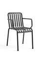 Den smukke Palissade stol med armlæn. Havestolen laves i farverne olive, sky grey, anthracite eller hot galvanised. Brug evt. stolen på terrassen eller i haven sammen med de smukke Palissade borde, som du kan se nedenfor.