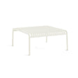 Palissade Low Table i cream white er det lavmælt elegante centrum for din loungezone ude. Den kvadratiske form med slanke lameller giver et roligt og grafisk udtryk, der tilfører terrassen eller altanen en lys, nordisk lethed. Bordet er udført i pulverlakeret stål med udendørs primer, så det står imod vejr og vind og bliver ved med at se indbydende ud år efter år. Lamellerne lader regnvand løbe af og gør rengøringen enkel, mens de korte ben giver en stabil, jordnær fornemmelse uden at virke tungt. Stil det mellem to loungestole, foran en sofa eller brug det solo som diskret sidebord til lanterner og krukker. Den milde cream white tone spiller smukt sammen med naturmaterialer og forstærker følelsen af ro og rummelighed i små såvel som store uderum. Kollektionens gennemgående geometri betyder samtidig, at bordet matcher resten af Palissade serien i både proportioner og udtryk, så du nemt kan bygge et helhedslook på tværs af stole, bænke og sofaer.