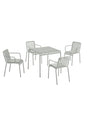 HAY Palissade Collection Den efterånden velkendte og holdbare Palissade kollektion fra HAY er både funktionel og smuk at se på. Her i et sæt med 4 armstole og et spisebord i farven "Sky Grey". Sættet er inklusive 4 sædehynder.