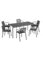 HAY Palissade Collection Den efterånden velkendte og holdbare Palissade kollektion fra HAY er både funktionel og smuk at se på. Her i et sæt med 6 armstole og et spisebord i farven "Anthracite". Sættet er inklusive 6 sædehynder.