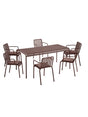HAY Palissade Collection Den efterånden velkendte og holdbare Palissade kollektion fra HAY er både funktionel og smuk at se på. Her i et sæt med 6 armstole og et spisebord i farven "Iron Red". Sættet er inklusive 6 sædehynder.