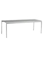 Palissade Table 220 x 90 cm fra HAY er det rummelige samlingspunkt i Palissade serien designet af Ronan og Erwan Bouroullec. Den grafiske lamelplade giver et let, luftigt udtryk, mens den solide stålkonstruktion sikrer stabilitet og lang levetid. Bordet integrerer naturligt i både haver og urbane miljøer og giver god plads til 6-8 personer. Ideelt til alt fra hverdagsmiddag til større sammenkomster. For galvaniserede overflader anbefales en let aftørring før brug.