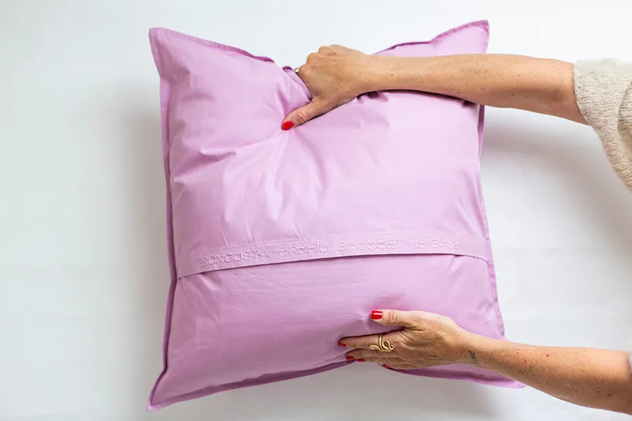 Papelain puderne fra Bongusta er lavet i en 100% bomuldspoplin kvalitet og fås i fem forskellige Pantone farver. Farvens Pantone-navn er syet på bagsiden af puden. Den er har lukning i konvolutstil.