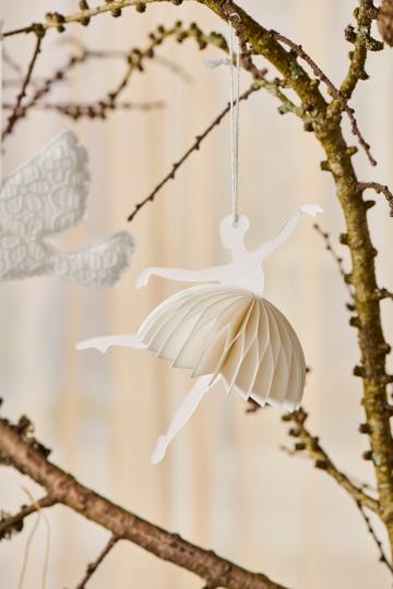 Lad julen danse ind i hjemmet med denne fortryllende papirklip ballerina fra Ib Laursen. Den elegante figur balancerer yndefuldt i en klassisk danseposition og bringer en stemning af ro, tradition og eventyrlig charme til din juleudsmykning. Uanset om du vælger den i hvid eller brun, skaber ballerinaen et poetisk udtryk, der passer perfekt på juletræet, i vinduet eller som pynt på en gren i en smuk vase.
