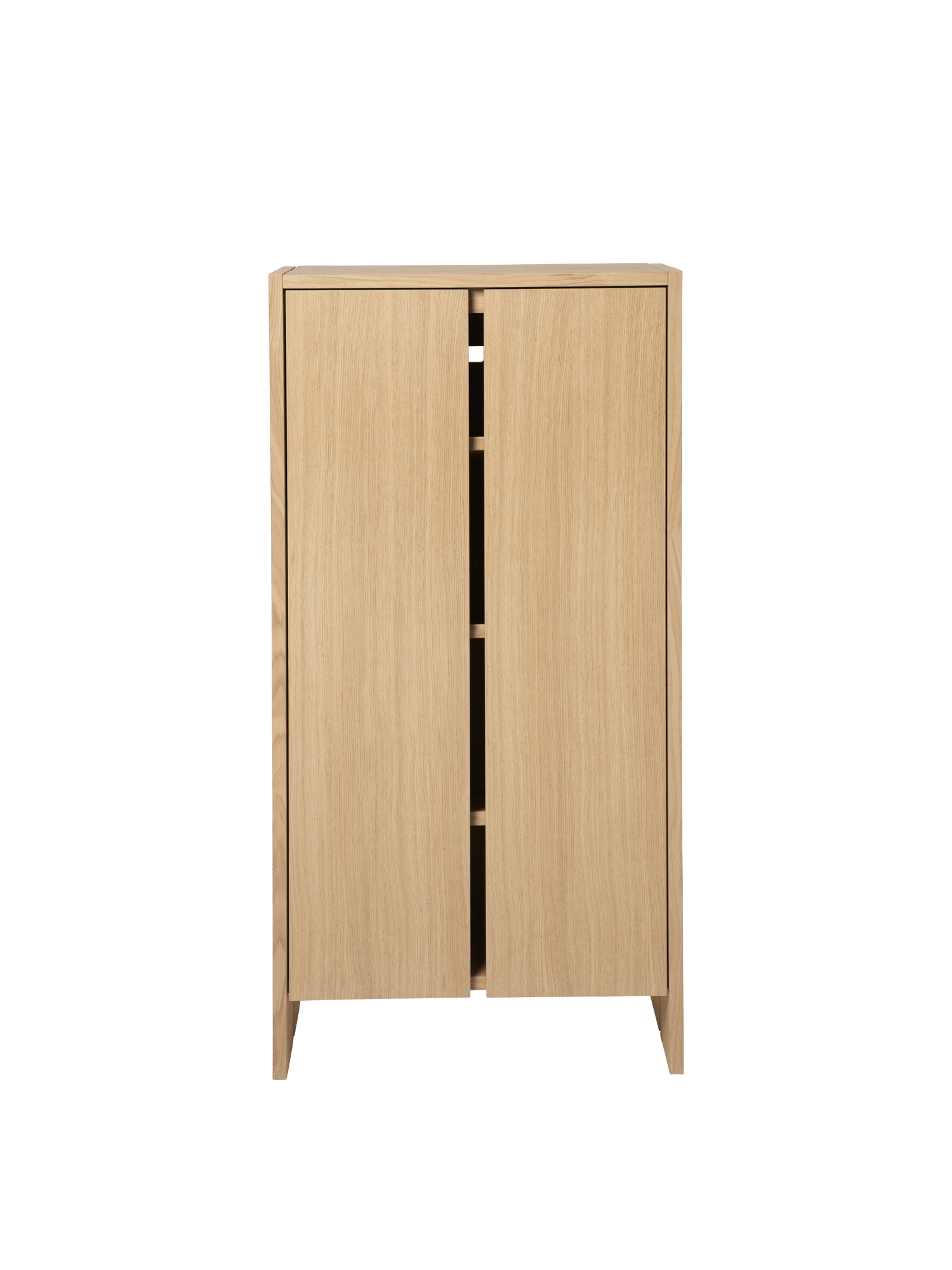 Parcel Hallway entréskab høj fra Ferm Living er skabt til dig, der vil have en entré, der føles rolig, ryddelig og indbydende, også når kvadratmeterne er få. Skabet har et let, arkitektonisk udtryk og en slank dybde, som gør det ideelt til smalle gange, mindre rum og lejligheder med begrænset plads. Her får du et entréskab og skoskab i ét, hvor designet gør oprydning til en naturlig del af hverdagen, uden at du skal gå på kompromis med æstetikken.