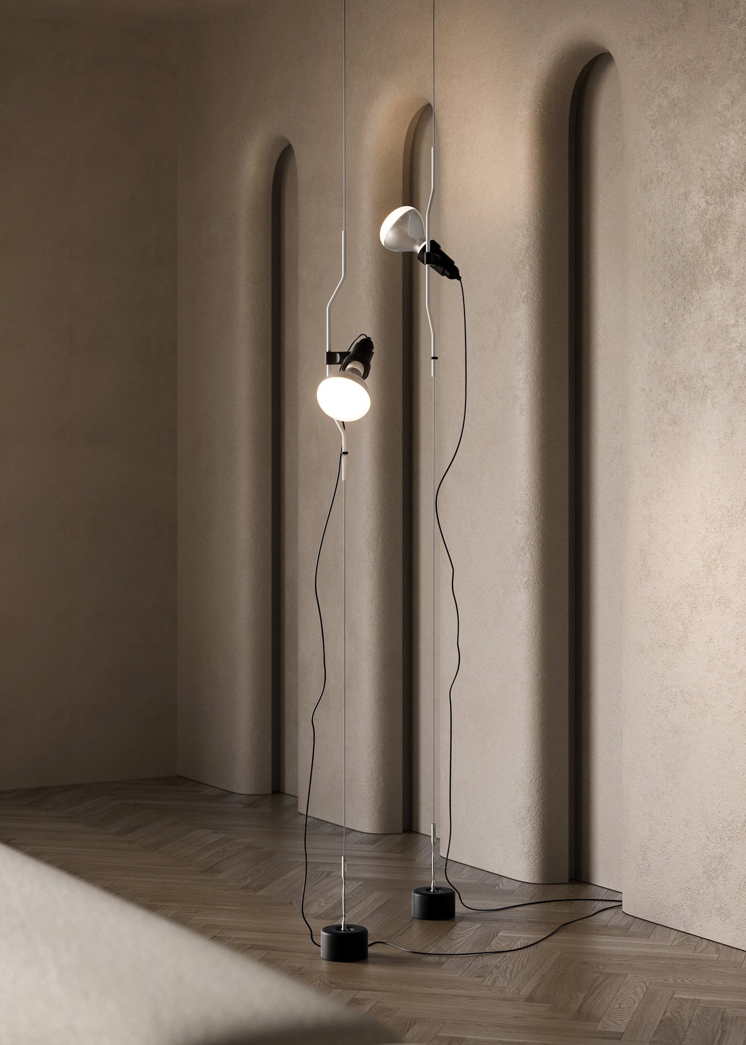 Parentesi lampen fra Flos er designet af Achille Castiglioni & Pio Manzù i 1971. Lampen monteres både i loftet og på gulvet, så den kan flyttes lige hvor derhen (op eller ned) hvor man ønsker lyset. En praktisk lampe til soveværelset, stuen eller kontoret, hvis har brug for en lampe med flere anvendelsesmuligheder.
