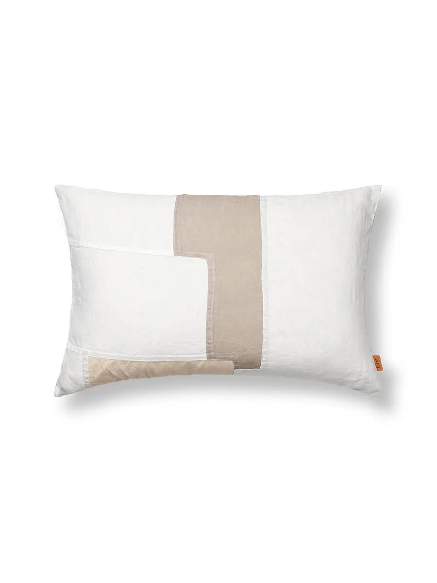 En fin pude inspireret af den traditionelle koreanske Pojagi-teknik, og består af et moderne patchwork, lavet af hør og GOTS-certificeret økologisk bomuld.