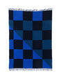 De moderne Patch plaider kommer i fire forskellige mønstre og farver. Her er tæppet i farven blue/green/navy. Tæppet vil med sine store tern og de små frynser i enderne pifte både stuen og soveværelset op.