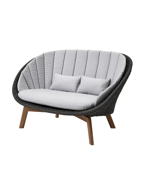 En smuk visuel sofa med masser af komfort. Peacock er en moderne sofa designet af Foersom & Hiort-Lorenzen MDD. Cane-line Soft Rope gør Peacock ideel til udendørs brug i ethvert klima, da designet og materialet er temperatur- og UV-resistent.