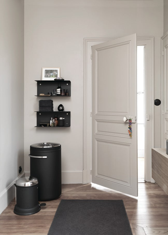 Vipp14 pedalspanden er en lille skraldespand til badeværelset. Denne pedalspand er udstyret med en udtagelig inderspand, et låg der sikrer lufttæt tillukning og en dæmpemekanisme, der lukker spandens låg i en blød bevægelse. En gummiring i bunden beskytter gulvet. Designet af: Holger Nielsen, 1939 Mål: Ø x H x D: 30 x 37 x 36 cm (Ø målt ved gulv) Materiale: Pulverlakeret stål, rutfrit stål, silikone Volume: 8 liter. Model: VIPP14 Farve: Sort 10 års garanti på Vipp pedalspande købt efter 2008. Pedalspande købt før 2008 har to års garanti.